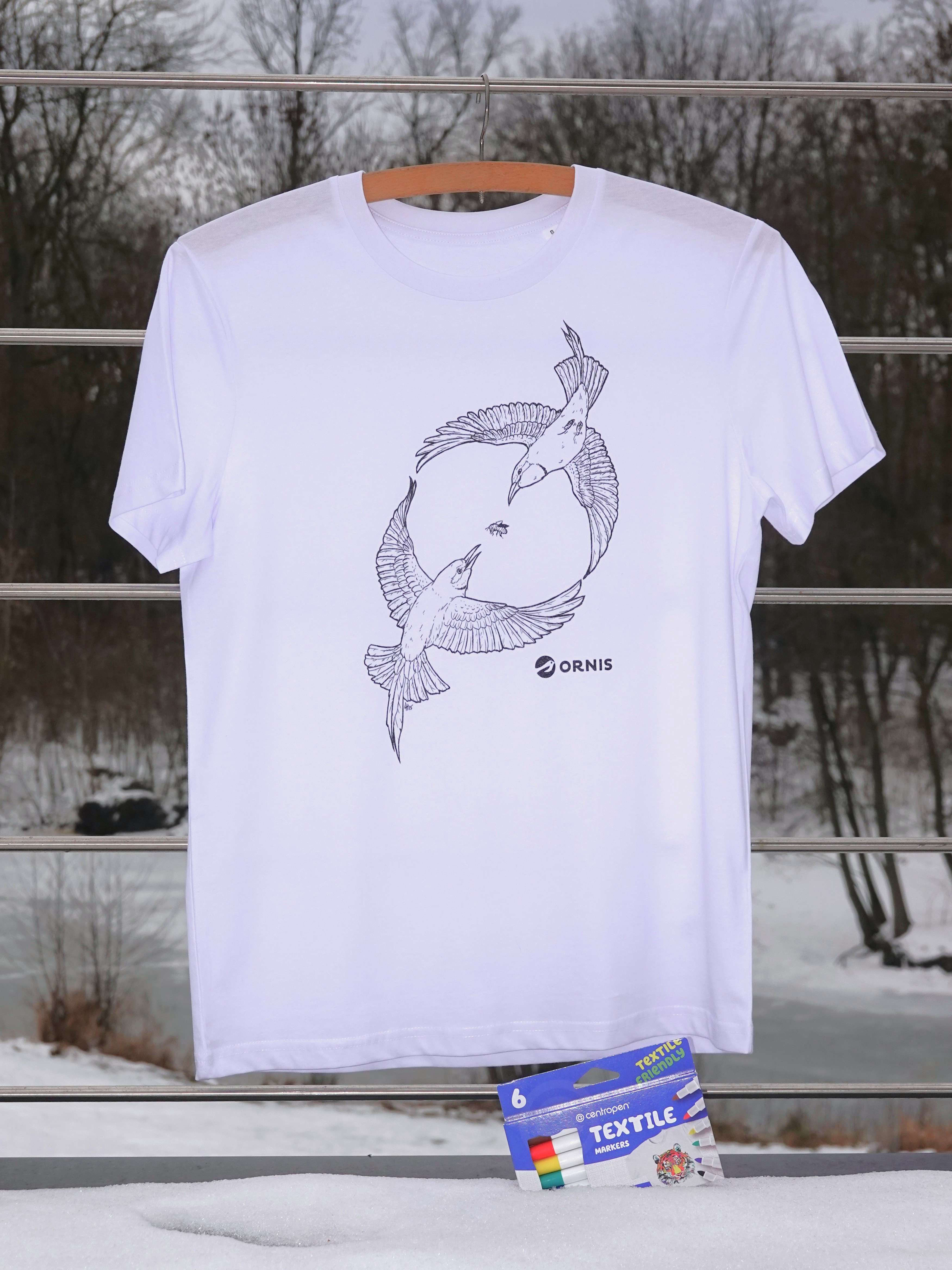 Bílé bavlněné tričko určené k vlastnímu dotvoření. Součástí balení jsou barvy (fixy) na textil.