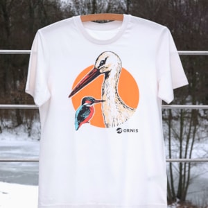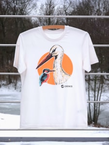 Tričko s potiskem čápa a ledňáčka