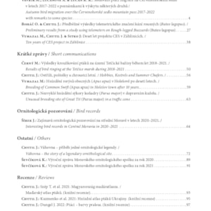 Po dvouleté pauze vyšel tradiční odborný časopis Zprávy MOS, tentokrát jako dvojčíslo 79/80. Přečíst si můžete například o výsledcích kroužkování na Červenohorském sedle, telemetrickém sledování kání rousných, shrnutí akce CES v Záhlinicích, historii váhovny u rybníka Nesyt nebo hnízdění rorýsů v Holešově.