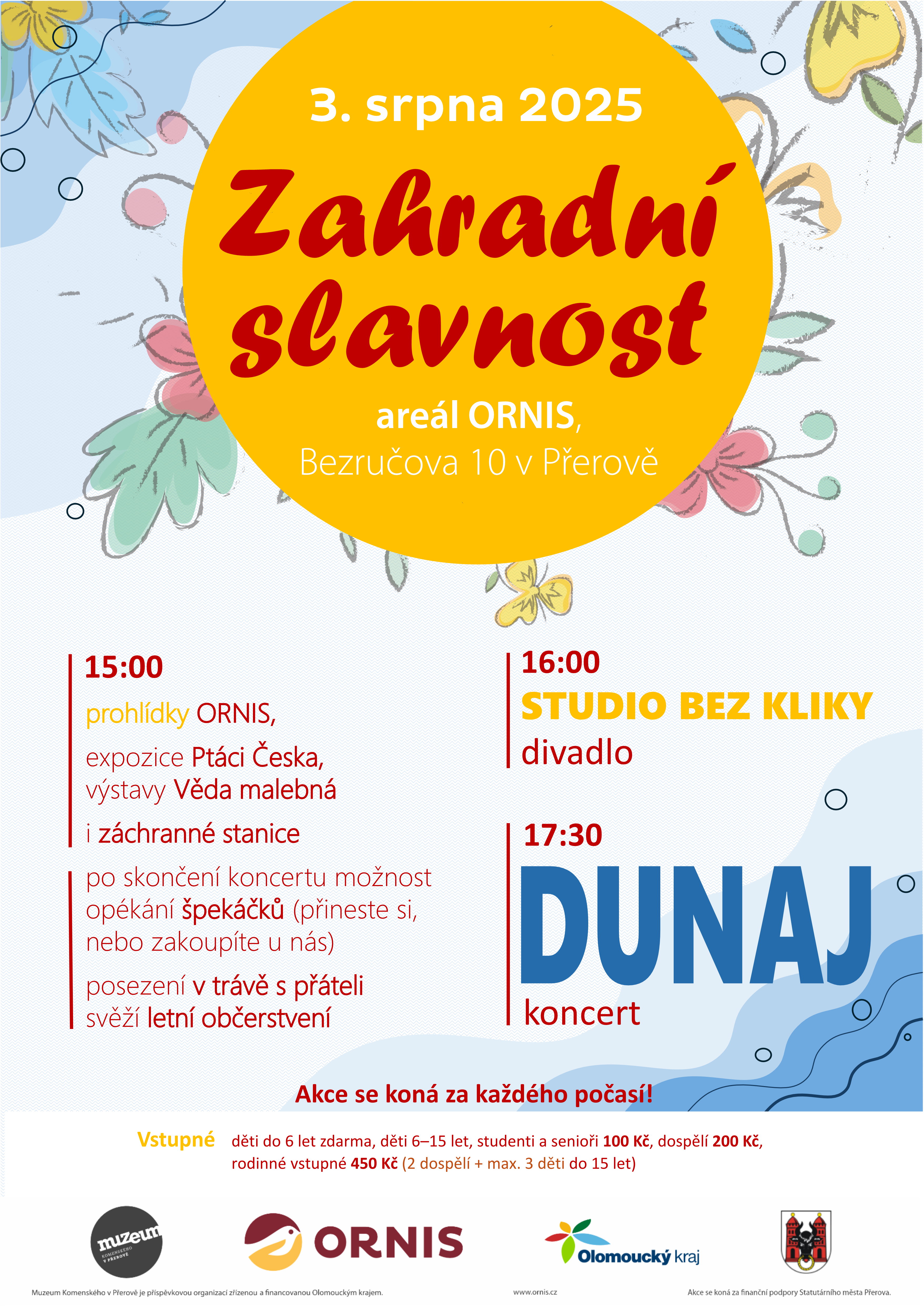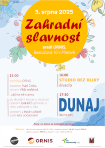 z důvodu příprav 14. Zahradní slavnosti bude ORNIS 3. srpna 2025 uzavřen v době od 12:00 do 14:30.