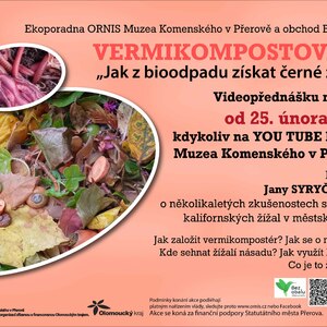 Od čtvrtka 25. února 2021 se na You Tube kanále našeho muzea můžete podívat na video, ve kterém Jana Syryčanská radí, jak lze zpracovávat bioodpad z domácnosti třeba i v malém městském bytě za pomoci kalifornských žížal. Dozvíte se, jak vyrobit vermikompostér, kde sehnat násadu žížal a jak je chovat. Uvidíte, jak vypadá žížalí čaj i hotový kompost a jakým způsobem se dají využít.