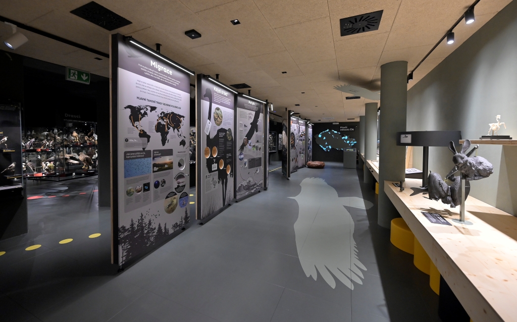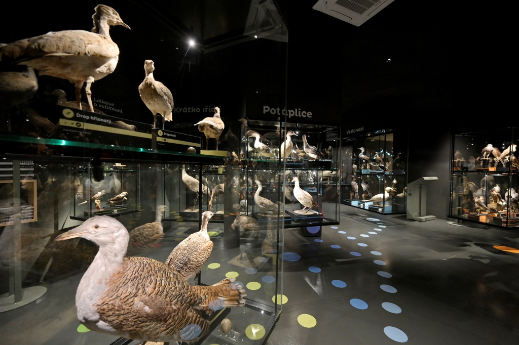 Nová expozice Ptáci Česka představuje návštěvníkům 366 ptačích druhů s výskytem v ČR tak, jak je můžeme v přírodě pozorovat – pokud jsou v rámci jednoho druhu jedinci různě zbarveni během roku, nebo jsou rozdíly ve velikosti a zbarvení mezi pohlavími a dospívajícími ptáky, snažíme se vystavit všechny tyto varianty. Celkem je zde k vidění 594 exponátů, u 248 druhů jsou vystavena také vejce.